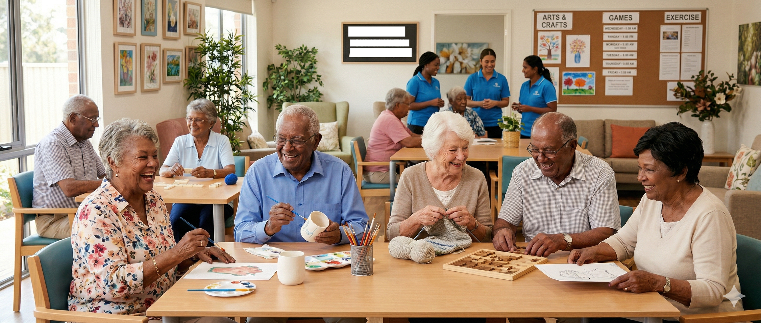 Storytelling, music therapy, art sessions, and games that enrich each guest’s day.